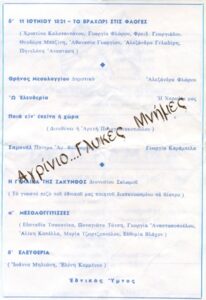Τα θεατρικά, τα ποιήματα και τα τραγούδια επιμελήθηκαν οι καθηγητές Κάτια Σταυροπούλου, Αλέκα Κατσουλίδου, Κων/νος Νικολακόπουλος, Ανδρέας Χαραλάμπους, Μιχαήλ Οικονόμου.